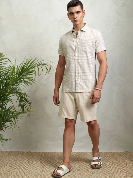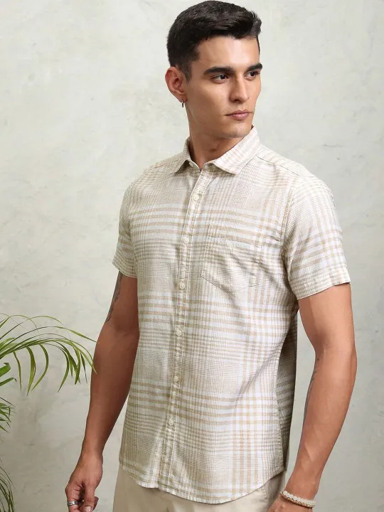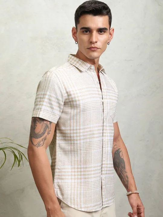 Highlander Men Natural Yarn Checked Casual Shirt