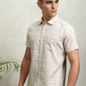 SKU: Highlander Men Natural Yarn Checked Casual Shirt