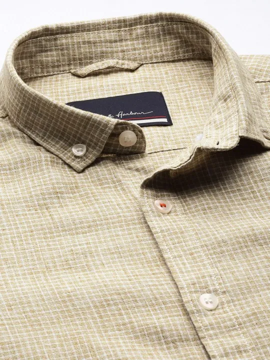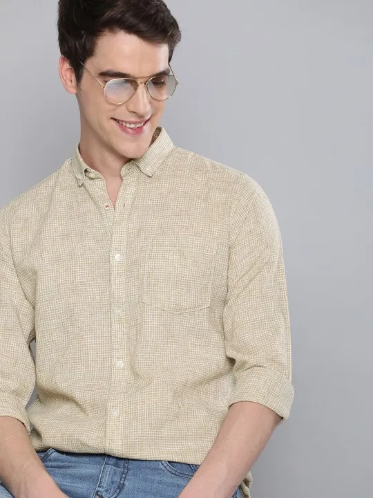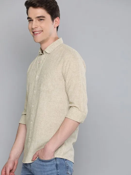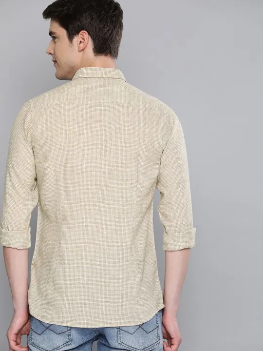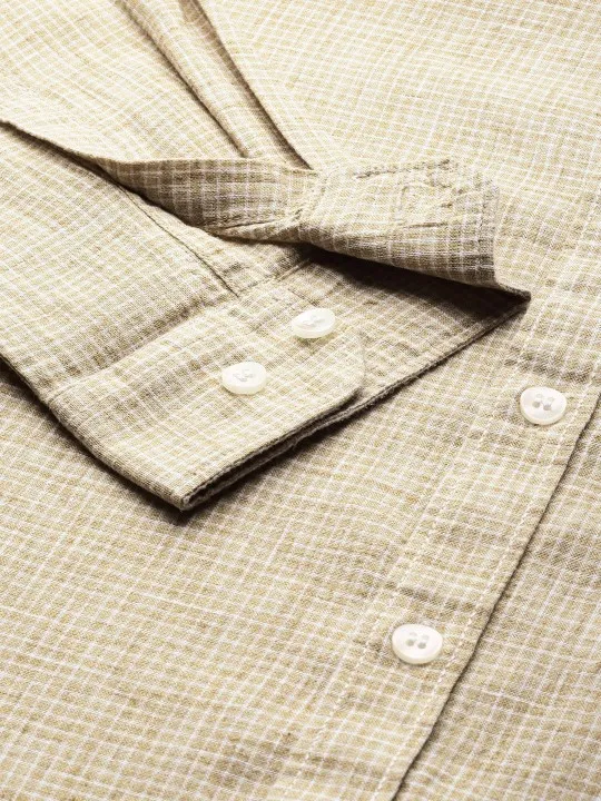 SKU: men Beige & White Regular Fit Checked Casual Shirt