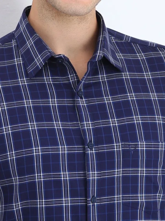 Men Spread Collar Tartan Checked Cotton Slim Fit Formal Shirt