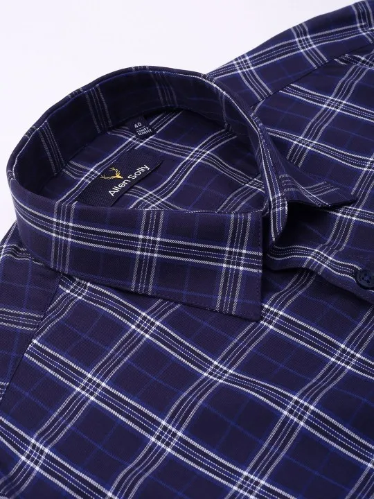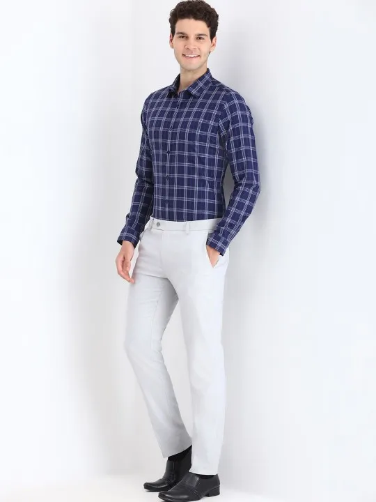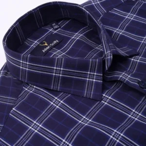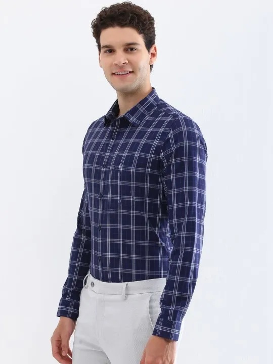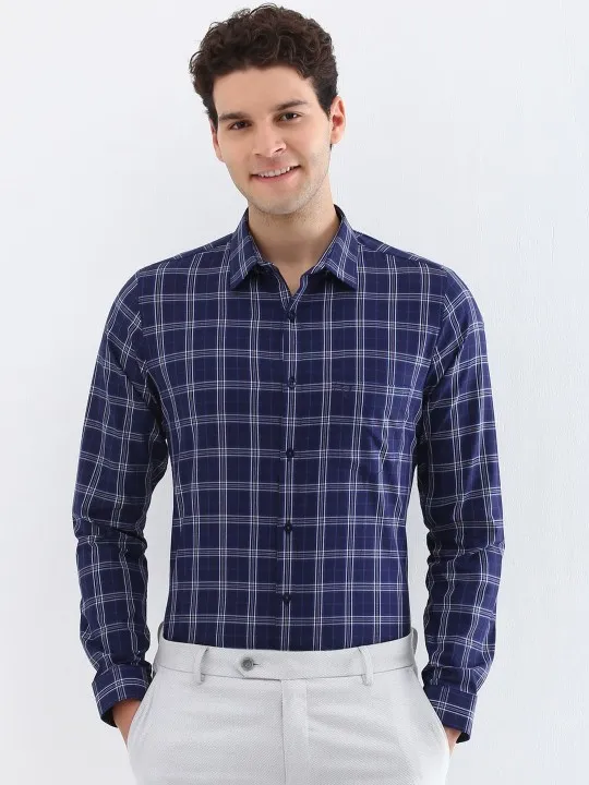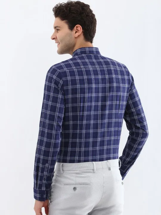 SKU: Men Spread Collar Tartan Checked Cotton Slim Fit Formal Shirt